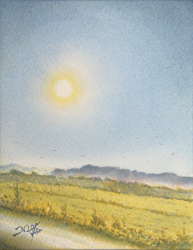 ■Title 《 とんぼの滑走路 》 ■Size 140mm×180mm ■Technique/Material 透明水彩/水彩紙 ■Year 2025年 ■Sign 作品に直筆サイン有り ■Condition 新品。良好。 ■Comment 穏やかな秋の日、飛び交うとんぼの航空機。 幅狭の田んぼはまるで滑走路のよう。 ■Artist 山口 泰