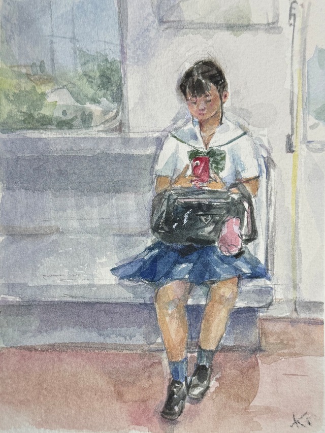 ■Title 《 早退けの少女 》 ■Size 140mm×180mm ■Technique/Material 透明水彩/水彩紙 ■Year 2025年 ■Sign 作品に直筆サイン有り ■Condition 新品。良好。 ■Comment 人物スケッチが好きで、たまに電車クロッキーをしています。 クロッキーをもとに小さな水彩作品にしてみました。 ■Artist mizue