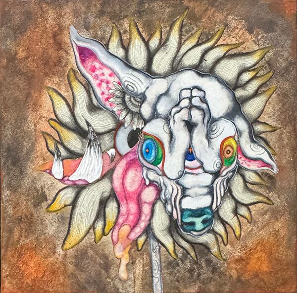 墨汁、顔彩、ペン、胡粉ジェッソ、/紙、パネル