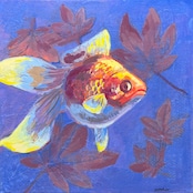 今回はもみじと金魚を組み合わせた制作しました。秋を感じさせるためにもみじと色を意識して、描きました。