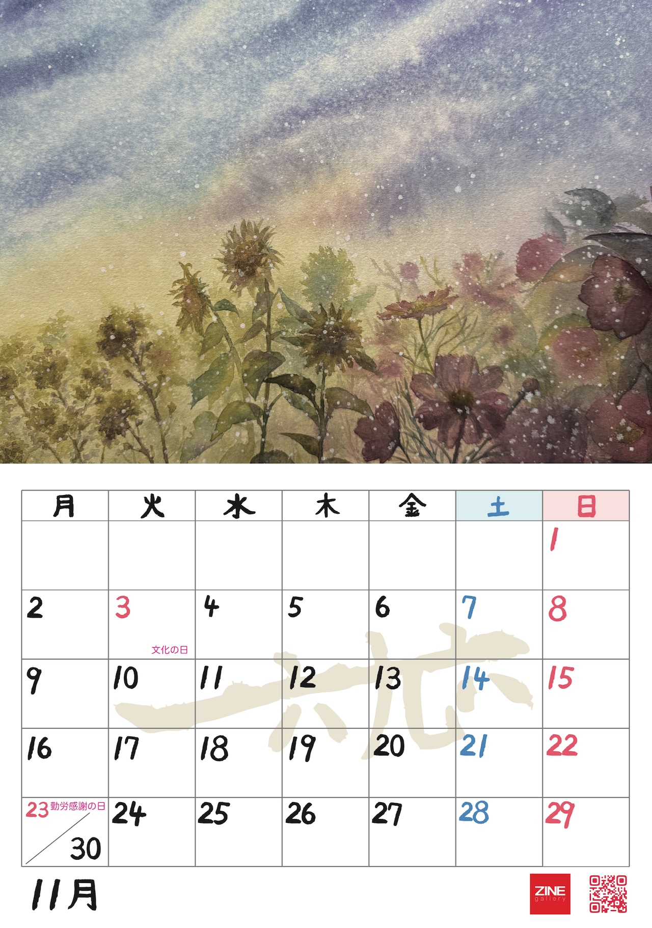 ※menoさんの作品が表紙のカレンダーに、重大なミスプリが見つかりまして、刷り直しいたしました。もちろん元々ご購入いただいた方には無償で送らせていただきます。