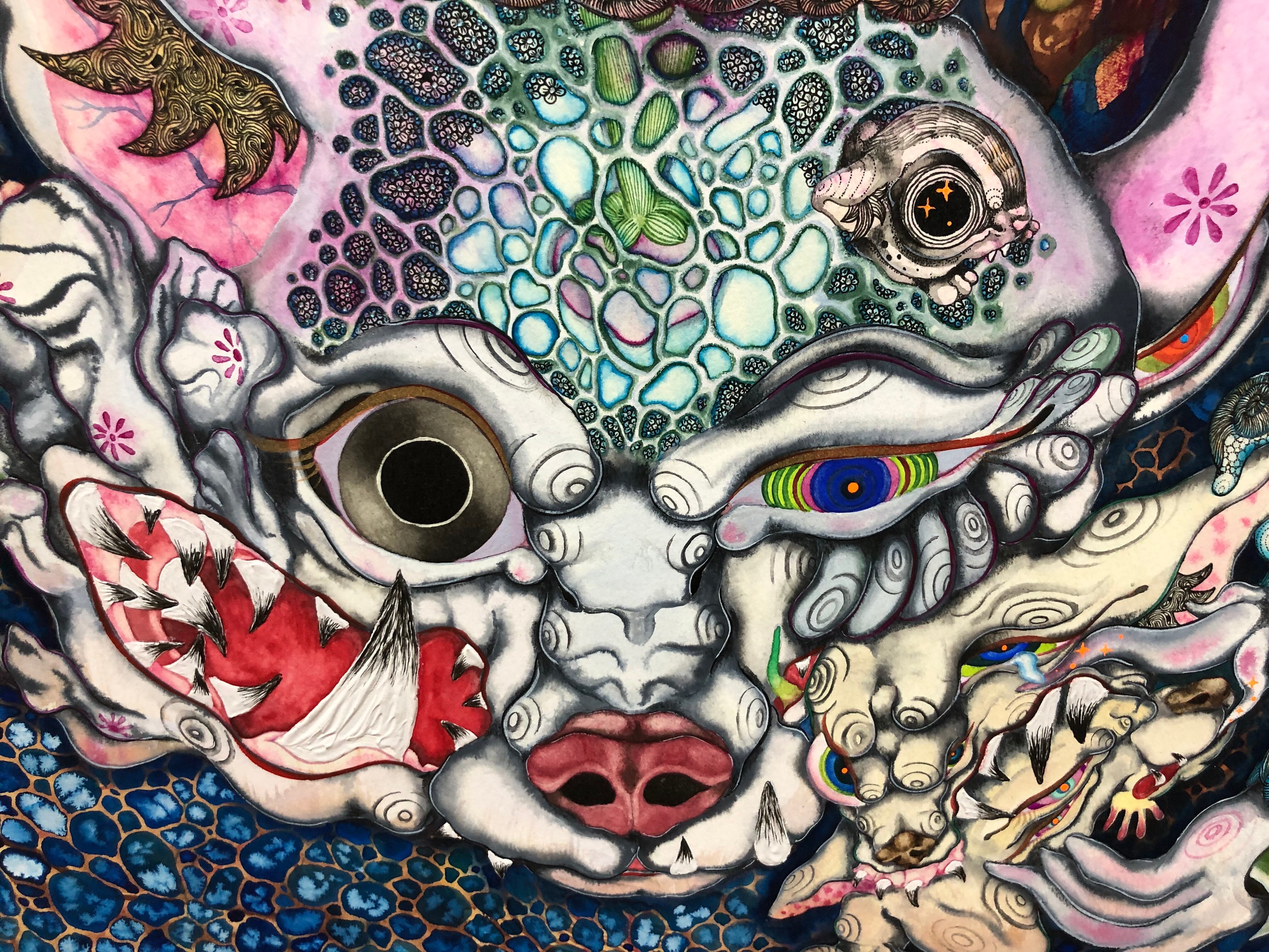 墨汁、顔彩、ペン、胡粉ジェッソ、和紙/紙、パネル